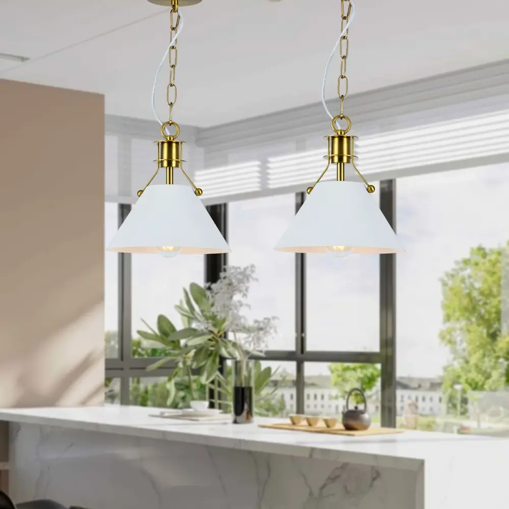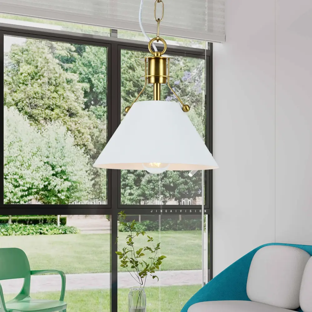 This 1-light pendant features a circular canopy and a sleek, cone-shaped shade formulated to illuminate smaller spaces, such as a round dining table or kitchen nook. Ideal for adding a touch of modern style, it works well in multiple arrange two or three to create a striking geometric display in your entryway or over a kitchen island. Constructed with a metal finish, it seamlessly unifies with modern and industrial decor. Plus, the fixture is height adjustable, dimmer-switch compatible, and suitable for sloped ceilings, making it a versatile choice for various settings.