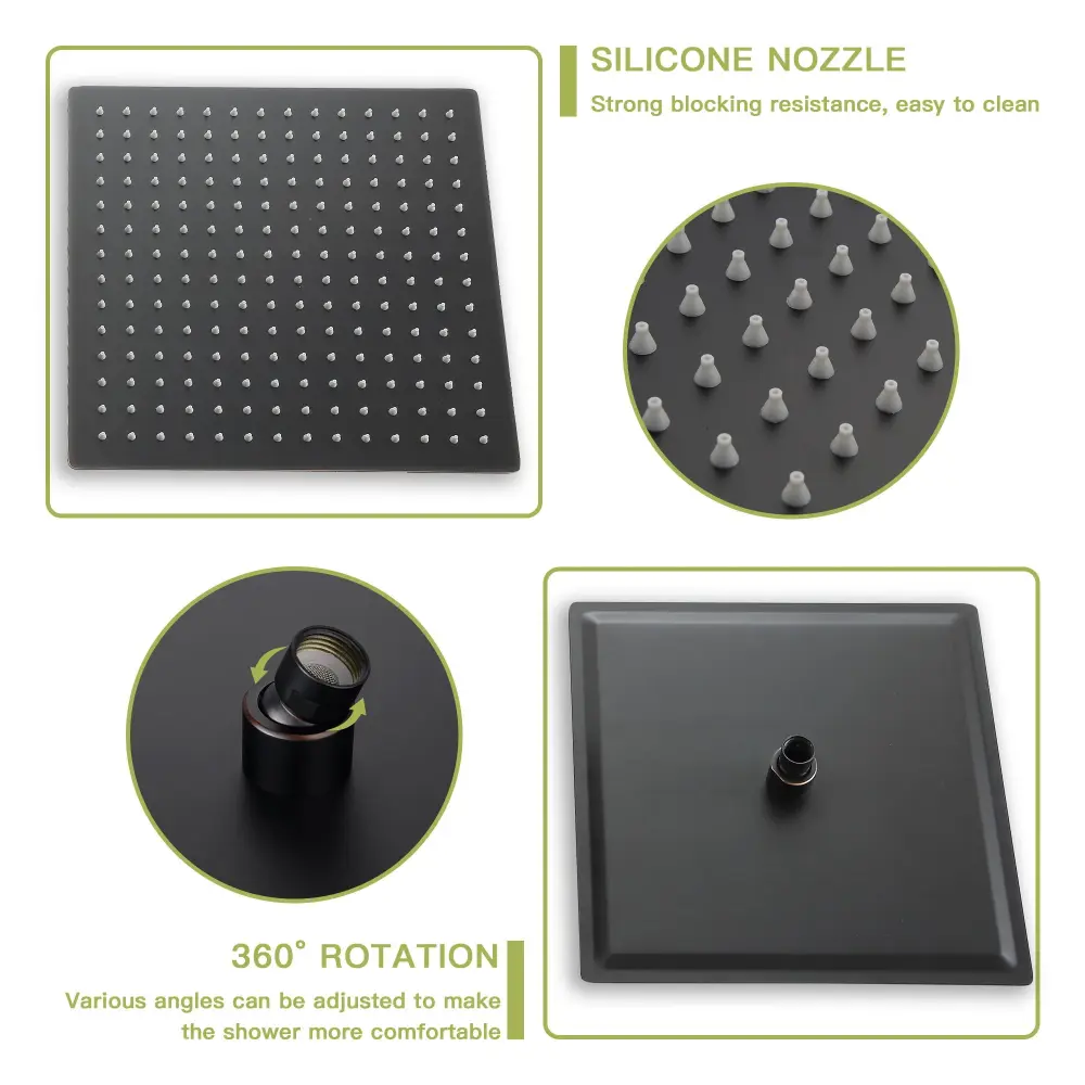 - Rainfall Shower Head: Enjoy a soothing downpour with 360° adjustability for complete coverage.