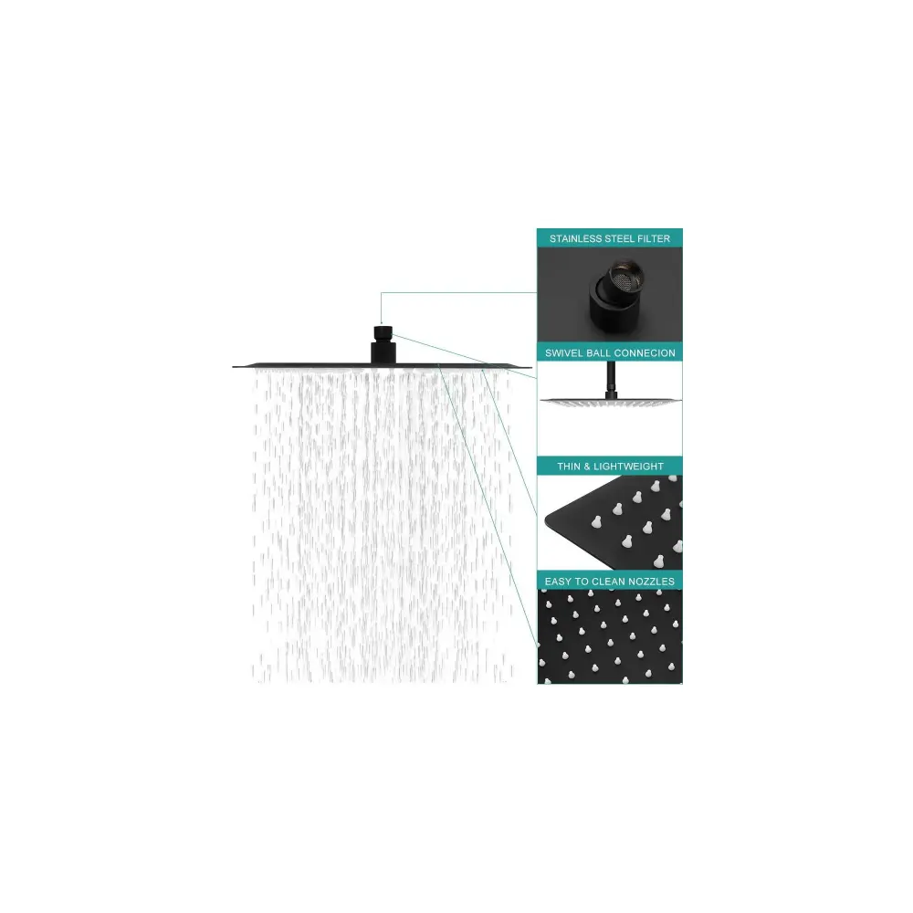 - Wide Coverage: 12-inch square design provides full body waterfall coverage.
