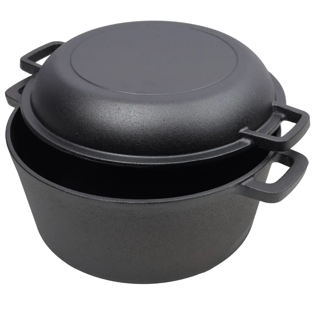 2 In 1 Pre-Seasoned Cast I Dutch Oven With Twin Handles, 5 Quart – Black
