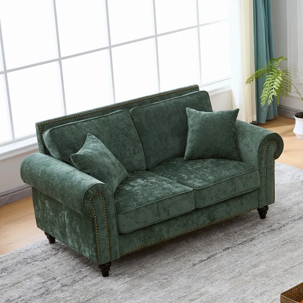 - Elegant Design: Featuring curved armrests and gorgeous nailhead trim, it blends elegance with classic appeal. Whether your home is up-to-date or traditional, this sofa enhances your interior decor with timeless style.