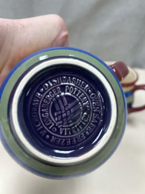 2 STRIPED BULBOUS MUGS