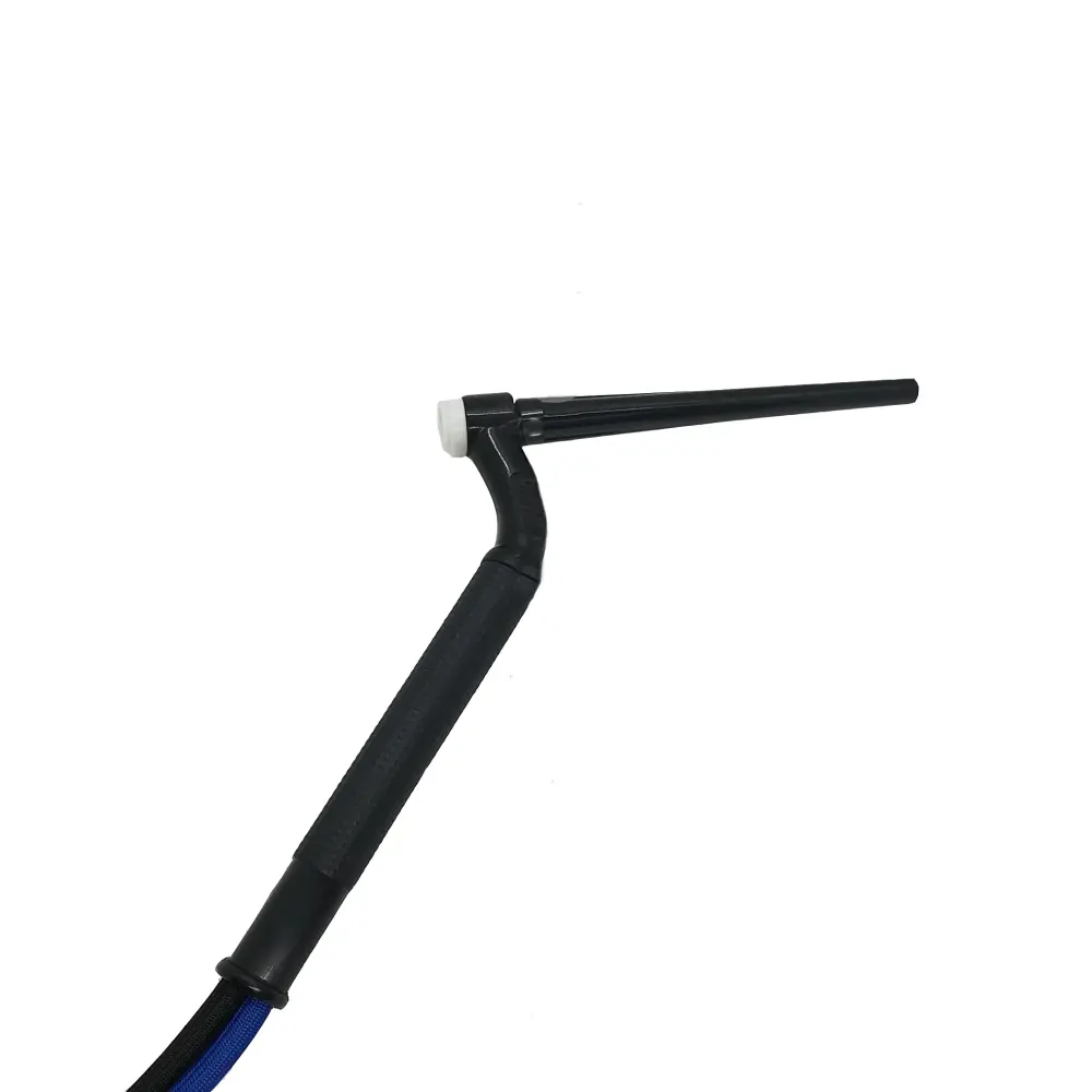 Available with a standard firm neck or a flex neck and in 12.5′ or 25′ lengths. Includes a long back cap and a heat shield. Collets, collet bodies, alumina cups, and tungsten sold separately.