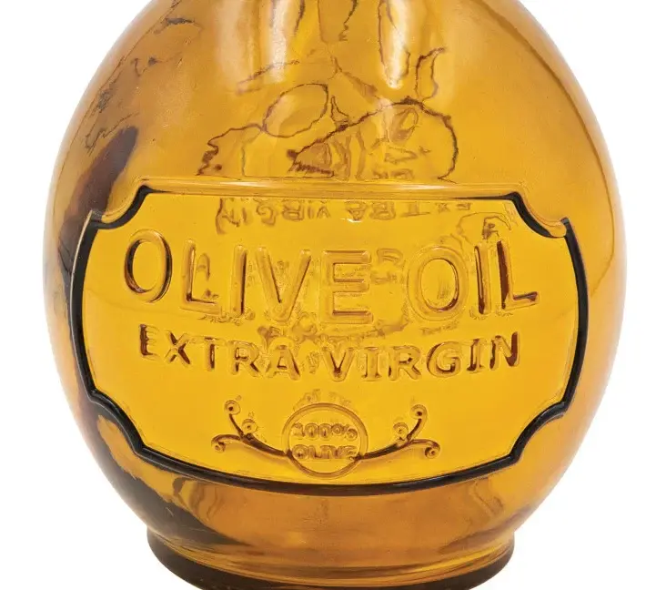 This amber embossed reclaimed glass bottle with cork stopper, “Olive Oil Extra Virgin,” is a lovely and practical way to store and display olive oil. The warm amber color of the glass complements any French country, farmhouse, classic, or cottagecore kitchen decor. Whether used for cooking, dressing salads, or simply as a decorative accent, adding a rustic elegance to the home.