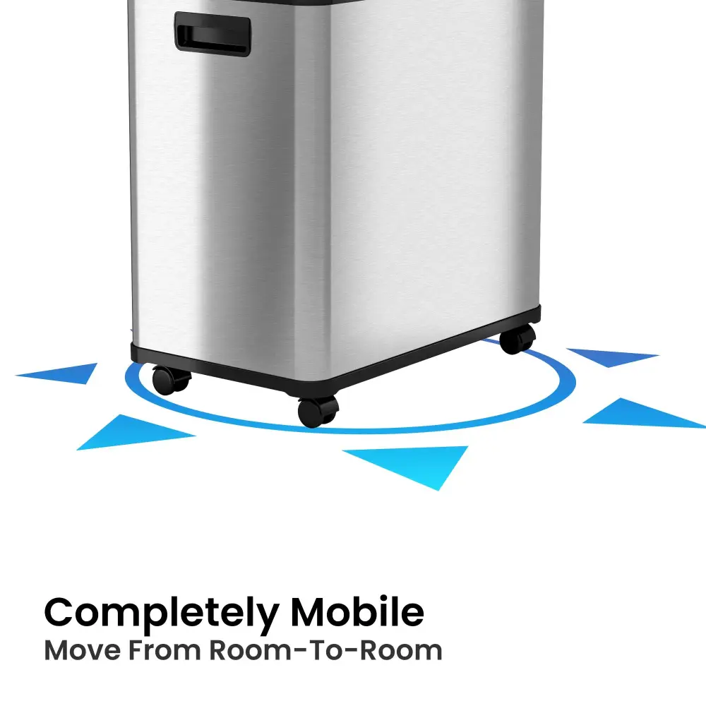 Upgrade your home with the 16 Gallon / 61 Liter Dual Compartment Stain-resistant Steel Sensor Recycle Bin and Trash Can. Designed for modern efficiency, this touchless bin automatically opens with a wave of your hand—keeping your space clean, odor-free, and completely hands-free. The two removable inner buckets make sorting trash and recyclables fast and simple, while the trim stainless steel body and removable wheels offer both style and mobility for any busy kitchen or workspace.