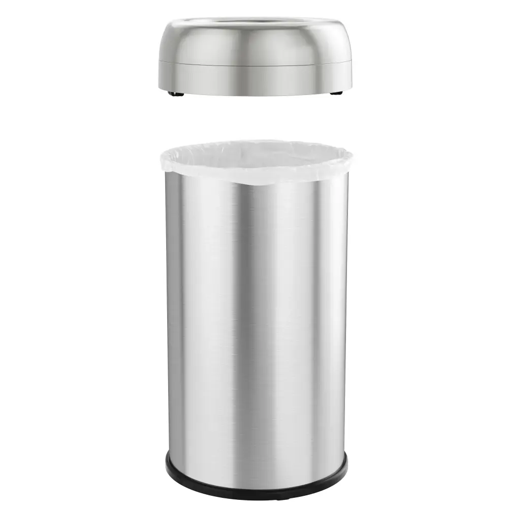 The 16 Gallon / 60 Liter Stainless Steel Round Open Top Kitchen Trash Can is a perfect solution for busy homes, offices, and commercial spaces. Designed to handle large trash volumes, this self-acting trash can features dual AbsorbX odor filters to keep trash odors in check, while its fingerprint-proof stainless steel body ensures a sleek and easy-to-maintain finish.