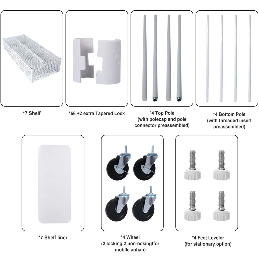 7 Tier Metal Shelf Wire Shelving Unit, 2450Lbs Heavy Duty Adjustable Storage Rack With Wheels & Shelf Liners F