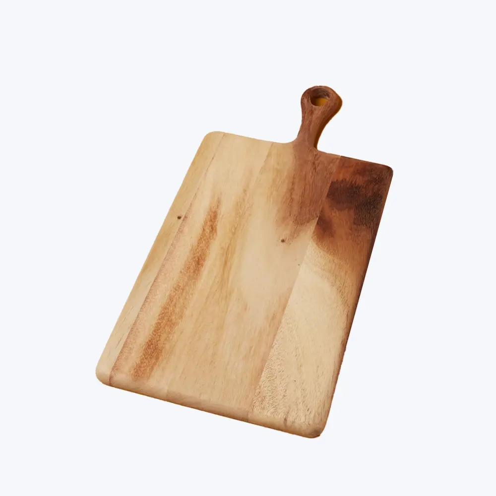 Serve in style and plate boldly with our brawny, beautiful Acacia Rectangular Board with Short Handle. Prized for its strength and vivacious grains, this acacia wood serving board gets more beautiful with age. This wood charcuterie board is handcrafted from raw acacia wood that is sustainably sourced by planting unused trees with every harvest. Pair with our cheese serving sets and caviar serving accessories to complete your serving set.Brand: abc home Category: Kitchen + Dining Sub-Category: Kitchen + Dining > Serveware
