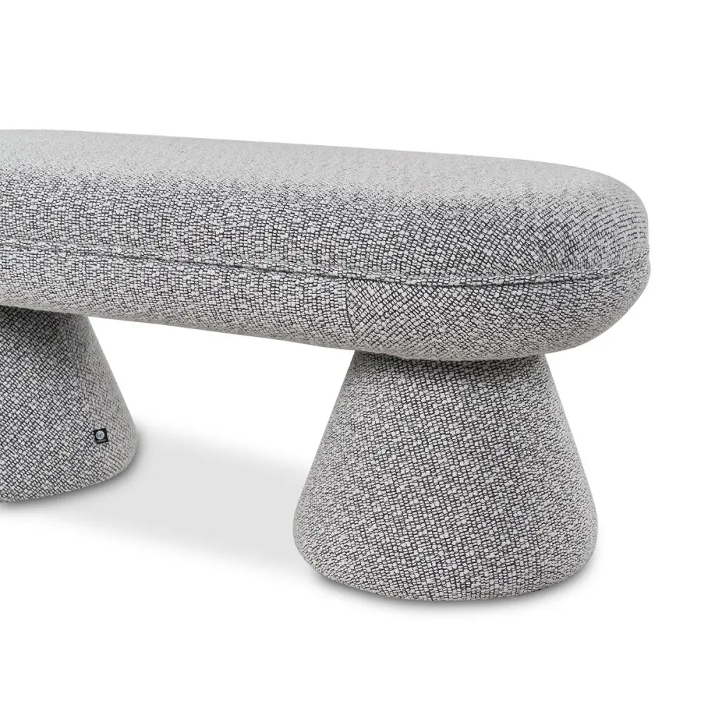 The Cusco Bench, with its striking black and white contrast, is a captivating blend of form and function. Solo Black upholstery pairs seamlessly with its bold design, featuring a rounded top and triangular-shaped legs that command attention. Optimal for both residential spaces and hospitality settings, this bench adds a touch of elegance whether at the foot of a bed or as a chic living room centerpiece. Every detail, from the wide feet to the plush seat, reflects meticulous craftsmanship and understated luxury. Available in Solo Black and Bennet Taupe, the Cusco Bench is a statement piece that enhances any space with modern sophistication.nnFeatures: Solo Onyx Upholstery. nnAlso available in Bennet Taupe Upholstery.