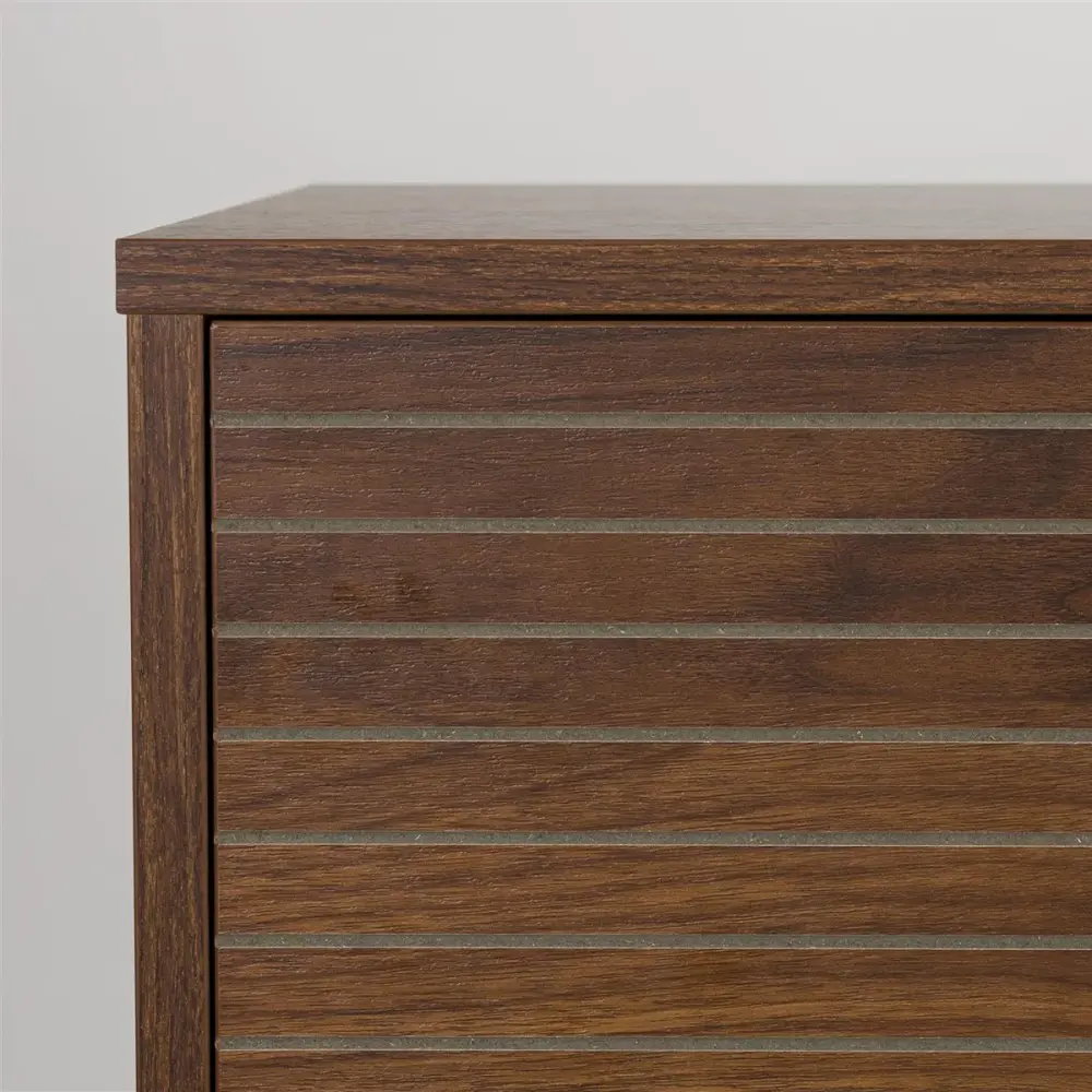 The Stripes High Sideboard in Brown is a refined blend of function and form. Its vertically elongated silhouette is enhanced by the walnut-hued finish and subtle striped-pattern detailing, making it an ideal piece for adding visual height and interest to your space. Fashioned from premium MDF and metal, it’s as practical as it is beautiful, providing stylish storage while seamlessly fitting into a range of interior styles.