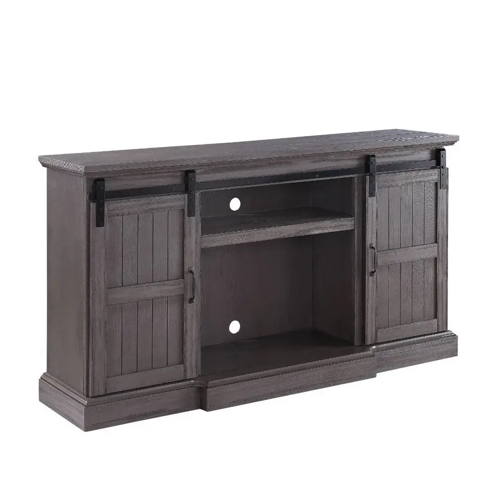 - Storage: 2 Sliding Barn Doors, Open Media Compartment