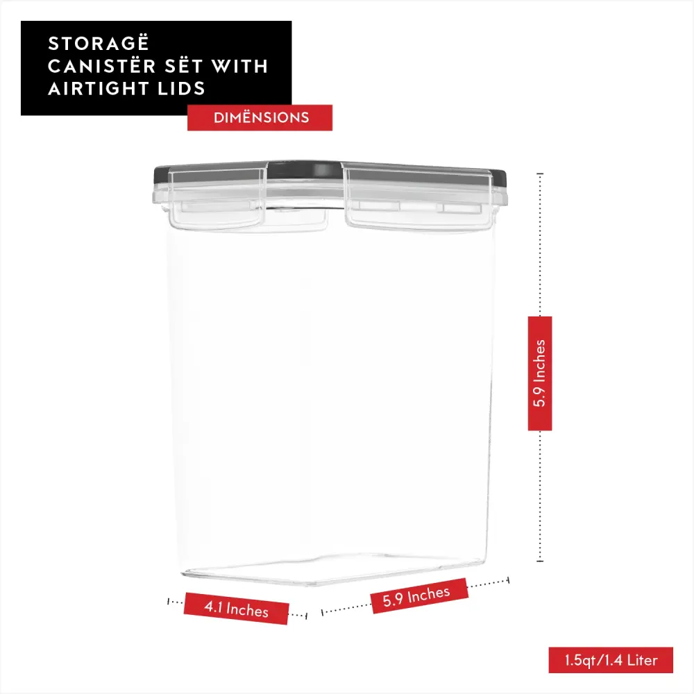 - PERFECT FOR PANTRY ORGANIZATION: This container set includes 8 airtight containers (1.5qt / 1.4 liters), which are perfect for storing baking supplies, oats, pasta, rice, flour, sugar, coffee, tea, snacks, nuts and even a tiny box of cereal, This set features in a beautiful box which makes it an ideal gift for any friend or family.