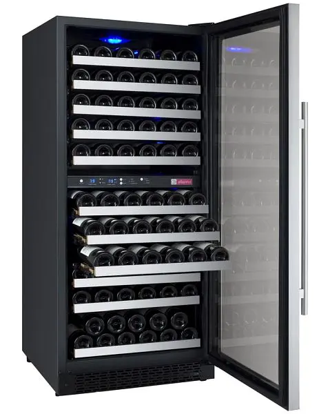 - Allavino’s FlexCount shelving design gives you flexible storage choices for up to 121 bottles of wine