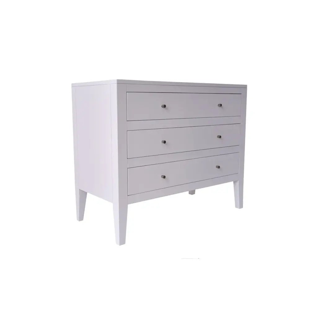 This birch wood chest of drawers features a pristine white finish that brings a fresh and airy feel to any bedroom. Designed with multiple drawers, it ensures generous storage space for your belongings, keeping them neatly organized and easily accessible. The timeless white color complements a variety of interior designs, from coastal to classic to modern. Its tough construction guarantees durability, making it a premium addition to your home. This chest combines practicality with elegance, enhancing the overall look and functionality of your bedroom.