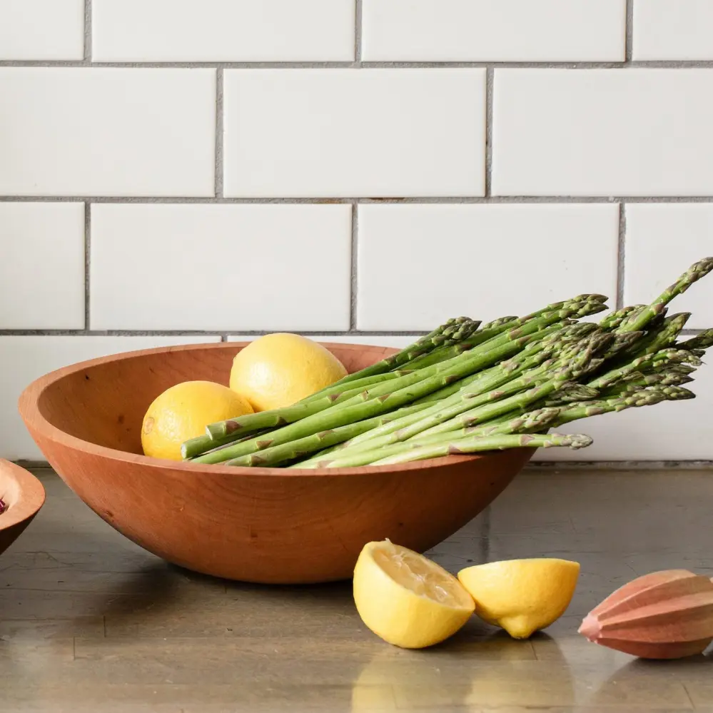 This 9″ cherry hardwood bowl is perfect for salads, sides,