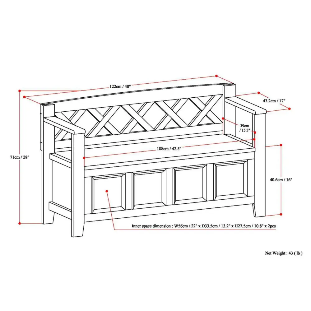 48.0″W x 17.0″D x 28.0″H – 41.9 lb