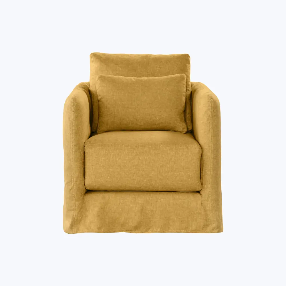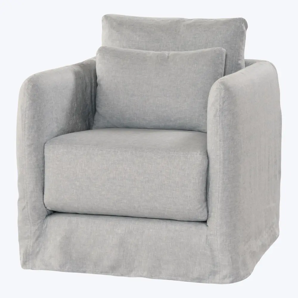 The soft-fill blend, a resilient foam core wrapped in air-spun polyester, delivers that sink-in feel without the fuss, so your chair always looks as welcoming as it feels. A full slip skirt skims the floor for a graceful finish, concealing the smooth swivel beneath. Whether paired with a matching sofa, tucked into a reading nook, or positioned for a perfect window view, this swivel chair becomes a place you return to again and again — for conversation, contemplation, or simply a quie