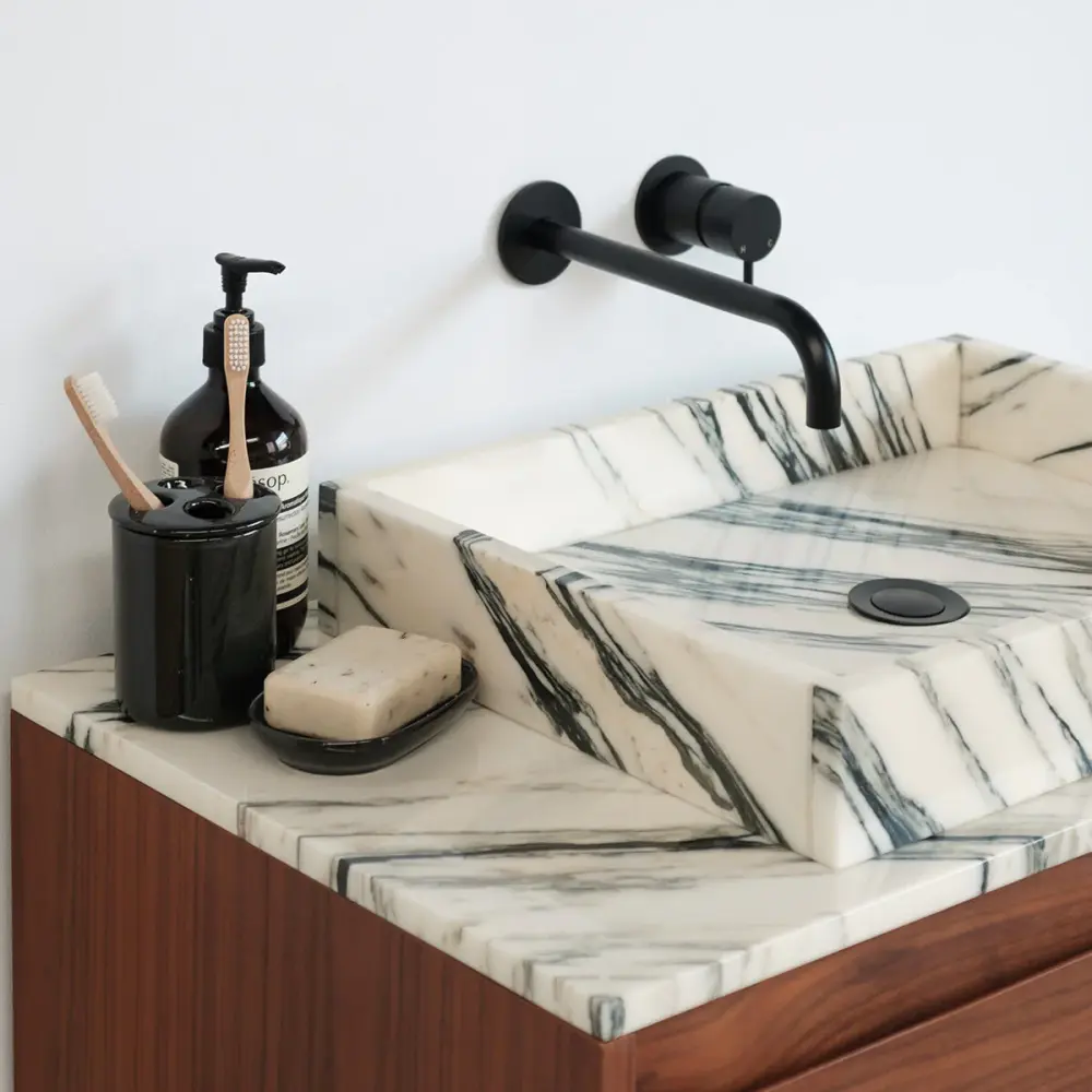 This timeless blue and white marble bathroom furniture is the perfect combination of class and elegance. Ideal for giving your bathroom a timeless look and just that little extra luxury.