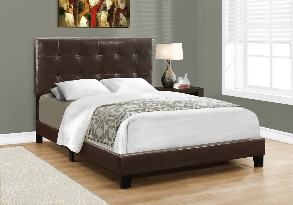 - Comfortable Upholstery: Upholstered in a soft fabric, the bed frame includes thick foam cushioning and a tufted backrest to ensure maximum comfort.