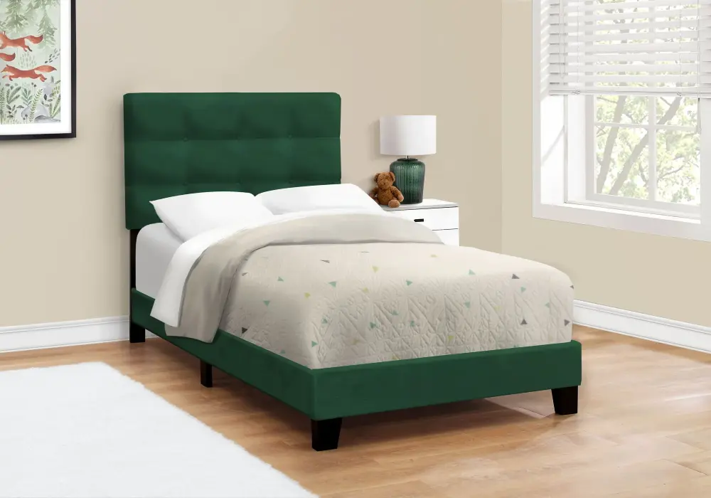 Twin Size Bed, Upholstered, Frame Only, Transitional – Green