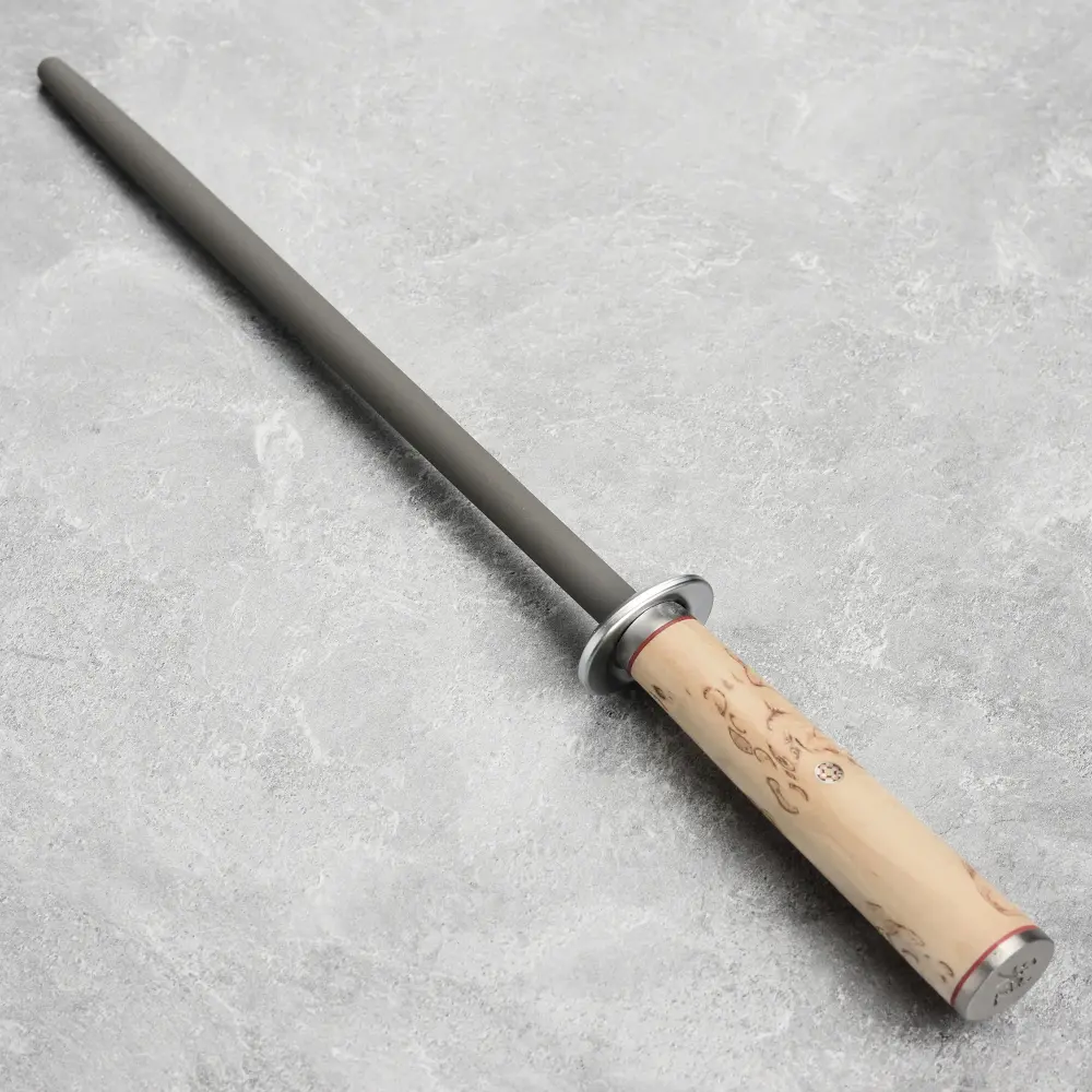 Top-of-the-line MIYABI Birchwood is a work of culinary art. Both blade and handle are artisanal from the most precious materials, which shape their striking appearance.More than meets the eye, the potent core of SG2 micro-carbide powder steel is protected by 100 layers of steel. MIYABI’s advanced, ice-hardening process locks in the long-lasting sharpness of the CRYODUR blades. Beneath its beautiful exterior, the flower Damascus pattern provides added durability.The scalpel-like blade is complemented by an equally striking Karelian (Masur) Birch handle. A prized material for knife handles, Karelian Birch is also the only wood ever used in a Faberge egg. Exquisite and ergonomic, MIYABI Birchwood knives feel as good as they look.