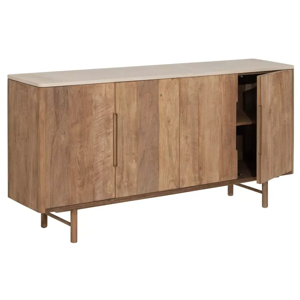 The Bliss Mortex Top Dresser is a captivating sideboard that brings an air of elegant elegance to any interior. This exquisite piece combines the natural warmth of teakwood with the sophisticated, fluid finish of Mortex, creating a harmonious blend of textures. Its light wood aesthetic secures versatility, seamlessly complementing a wide range of decor styles. Designed for both visual appeal and practical storage, the dresser offers a subtle yet striking presence in living areas or dining spaces. The unique combination of materials highlights a commitment to contemporary design and understated luxury, making the Bliss Mortex Top Dresser a truly distinctive and functional addition to your home.