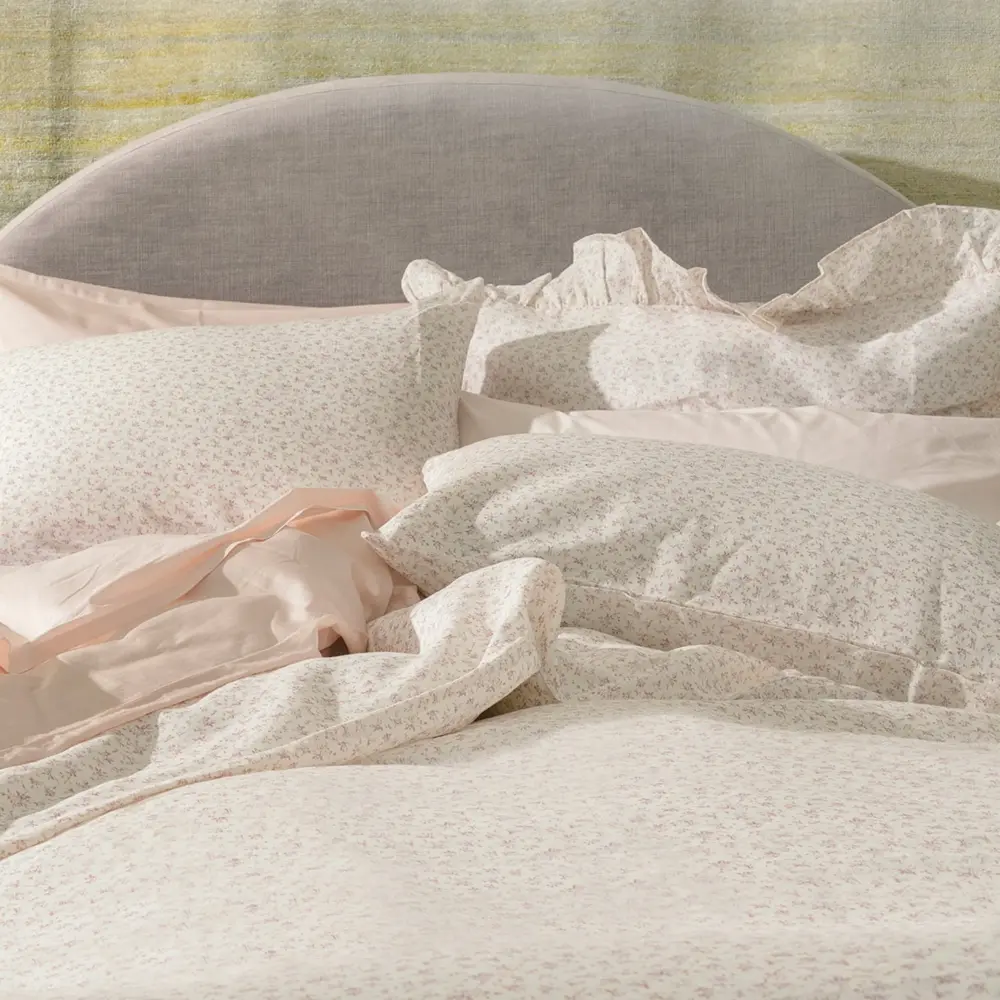 Discover the Blossom Floral Flax Ruffle Pillowcase Pair by abcDNA. Crafted in Italy for abc, this linen pillowcase set is finished with a ruffled edge, offering a touch of romantic charm to traditional and nostalgic interiors. Available in pink and green hues and Regular and King sizes.