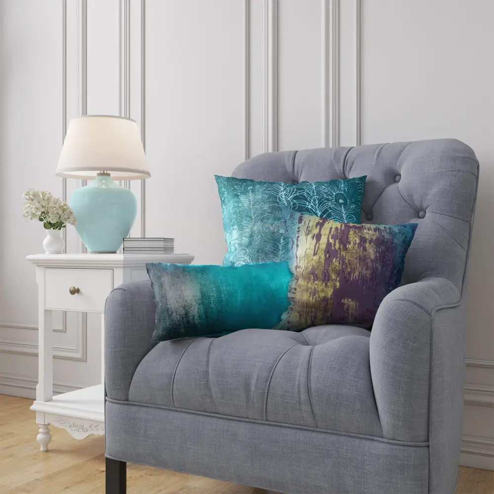 Brushstroke Velvet Pillow, Peacock ● Made in the USA – Domestic Materials ● Absorbs 3x More Water Than Cotton ▶ Absorb Spills in Seconds