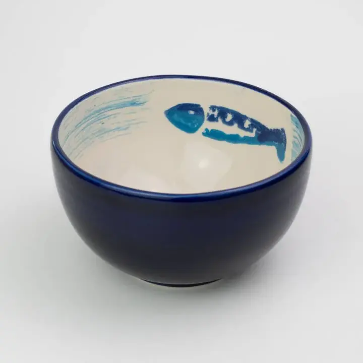Ceramic Breakfast Bowl / White and Blue Tuna