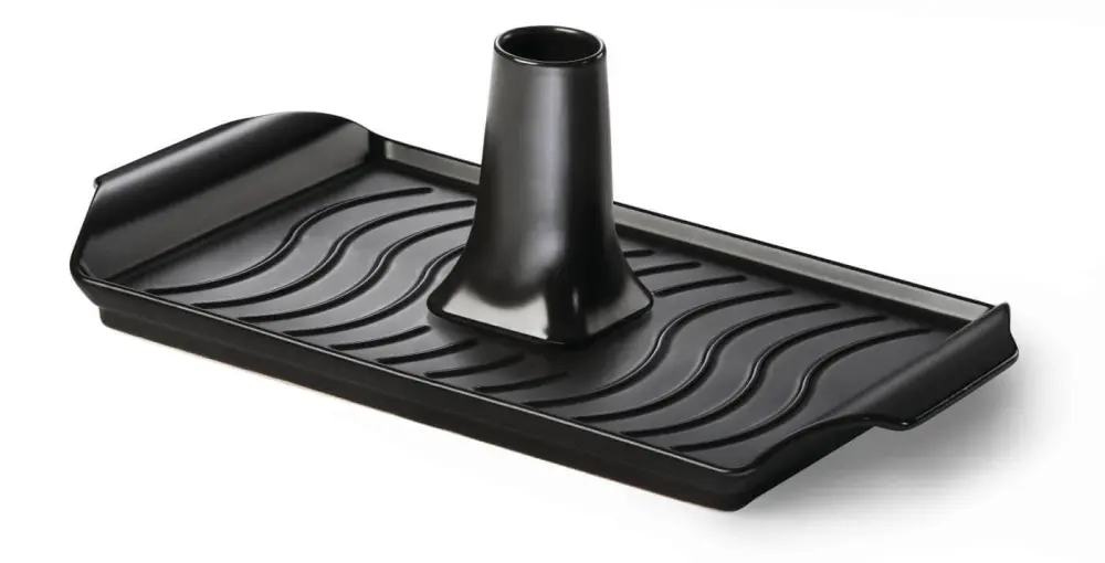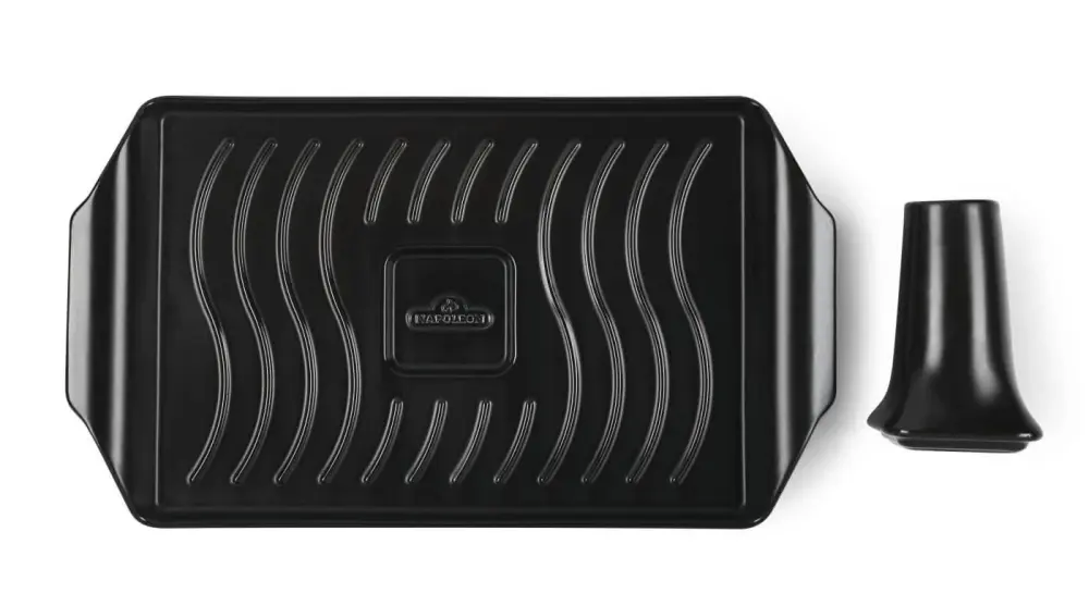 The Ceramic Roasting Pan And Beer Can Chicken Roaster Set incorporates the iconic WAVE™ patterned ridges and a detachable chicken holder for making beer can chicken. The nonstick glazed clay coating is perfect for roasting and baking everything from tasty vegetables to your favorite roast meats. Attach the roasting cylinder to infuse a roast chicken or turkey with your favorite flavored liquids like beer or juice. Cleanup is easy, everything in this set is dishwasher reliable. The pan is a generous 19-inches by 10-inches (48 cm x 25 cm) and will easily hold chickens of three to six pounds.