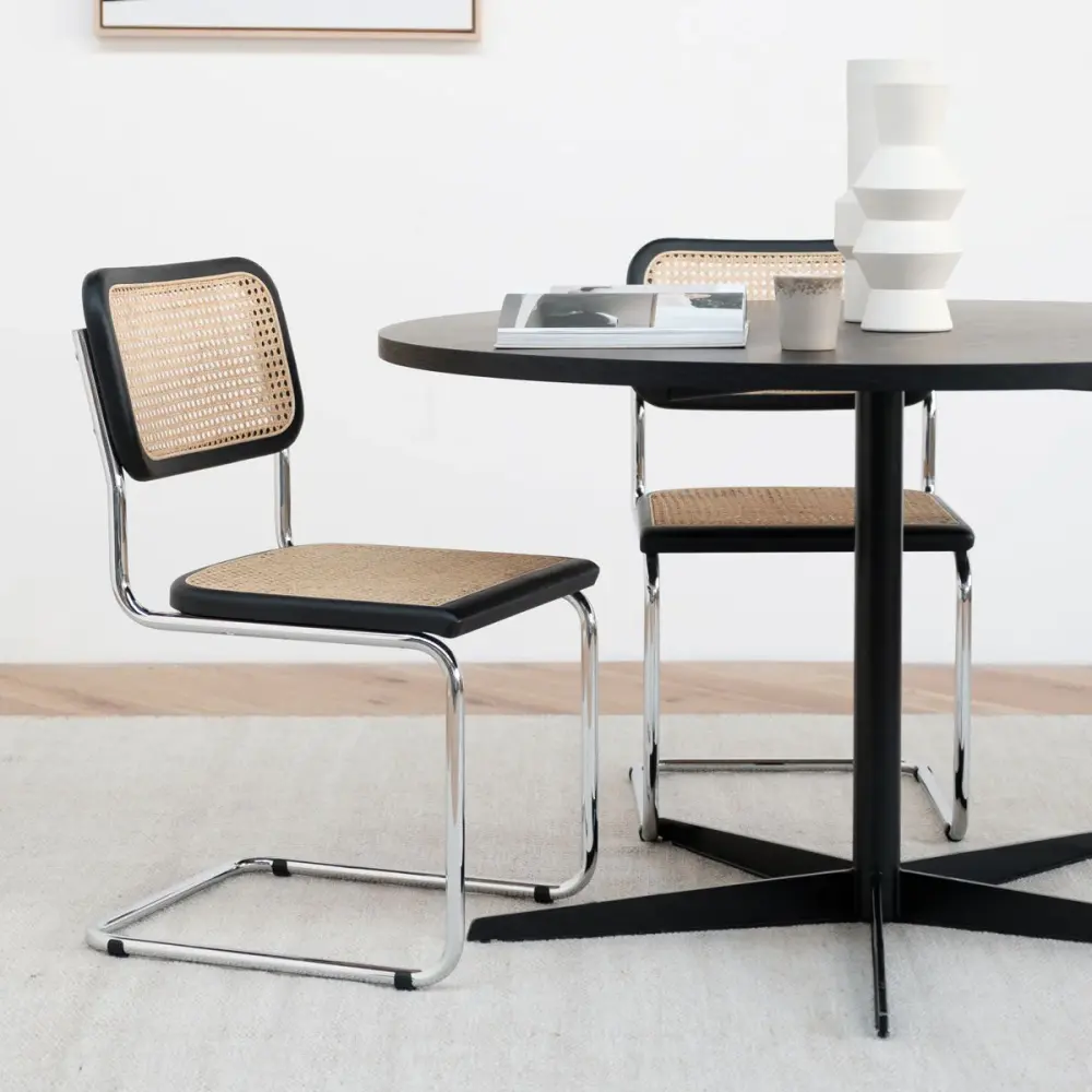 Chair in Natural Reed- Black/Chrome – Swing ● Armrest Pads – Replaceable ● Base: 5-Point Design ▶ Experience Ergonomic Support Today