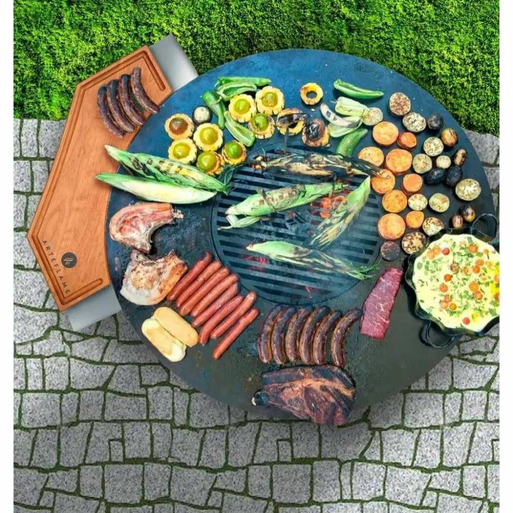 Made of high-grade long flowing grains of hardwood cherry, the arched diamond-block shape is for both grill and kitchen use. It will showcase all cuts of meat, poultry, vegetables and double as a one of kind cheese board. The curvature impeccably compliments the Arteflame cooktop of the 30″ and 40″ grills. Other features include a 5/8” juice groove and feet for stability. Maintenance is easy, all that is mandatory is the smallest amount of oil and store it inside after use. It is made with pride in the USA by The RoseWood Block Company. This company is known for its craftsmanship and custom-designed wood boards.