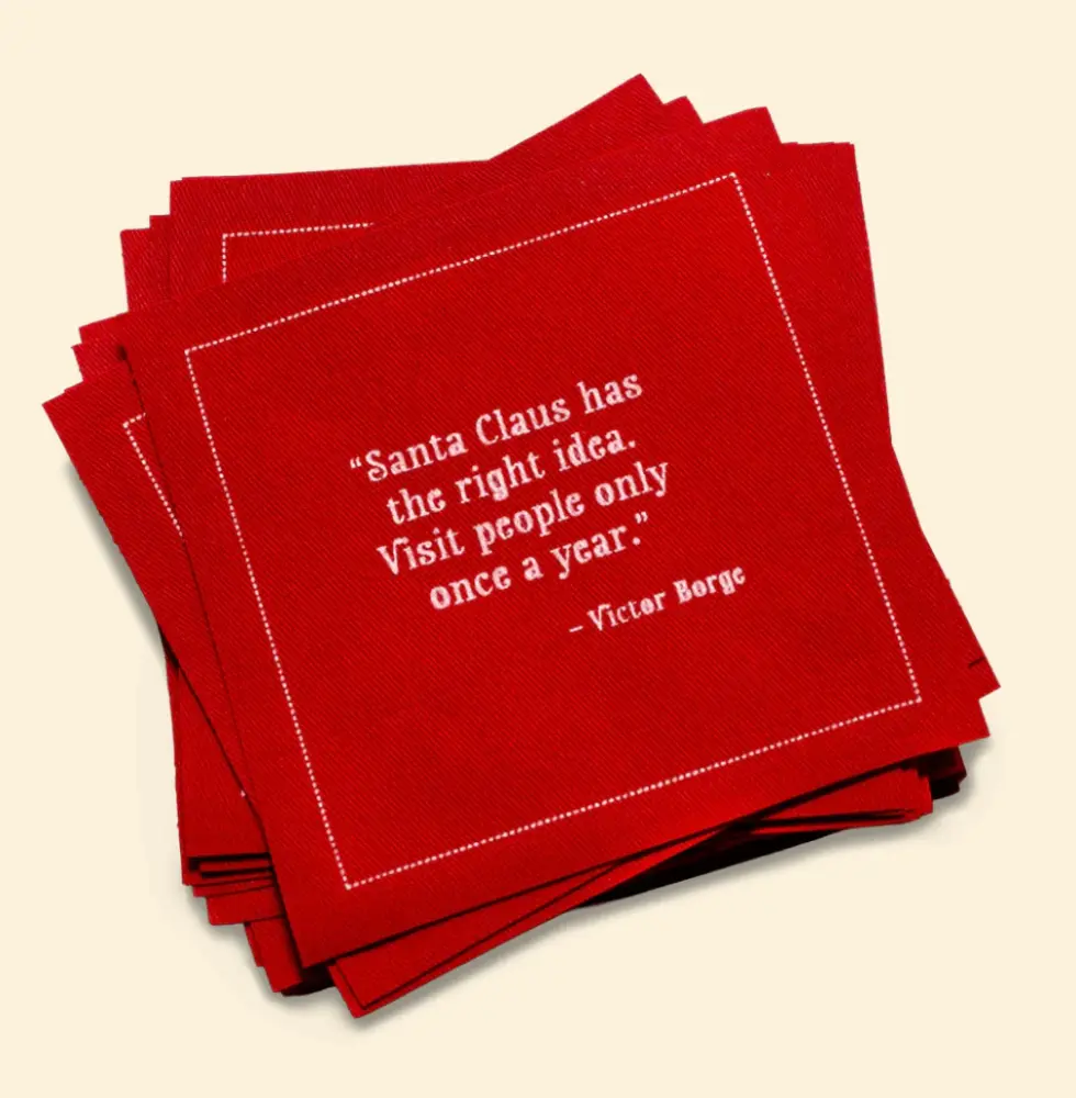 Ideal for holiday parties, office gatherings, cookie swaps, or Christmas dinner, these napkins add sparkle, wit, and warmth to every sip and toast.