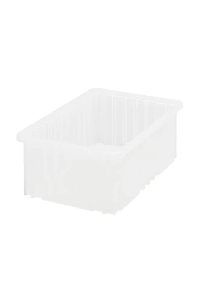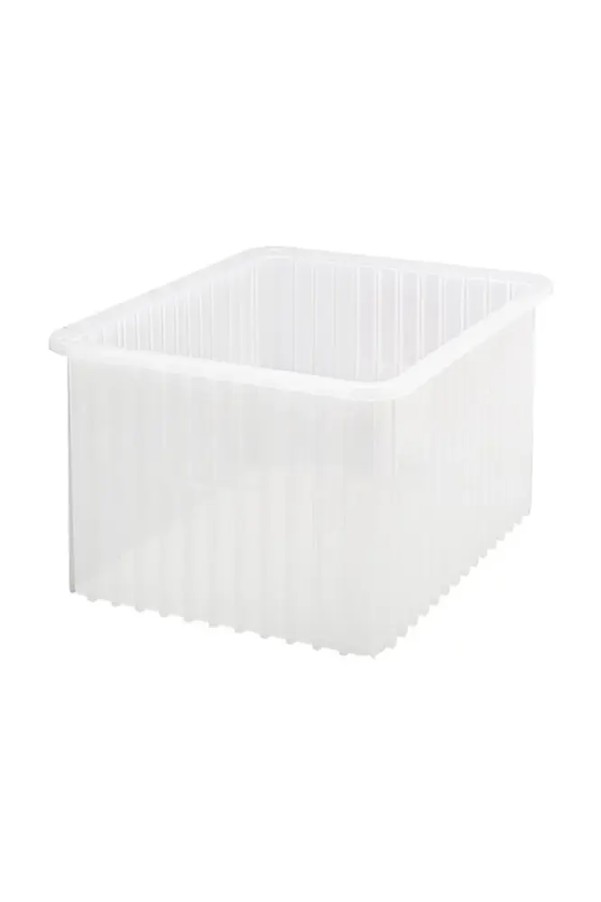 Clear View Industrial Dividable Grid Containers can be used in healthcare for storage, kitting and distribution applications. Resists most solvents and chemicals. These containers offer the safest and most efficient method for compartmentalizing and protecting small to medium-sized items. Dividers (sold separately) allow you to individualize the container’s interior to meet your exact needs. Strong stacking rims and external ribbing provide added strength. Optional snap-on lids keep contents secure and dust-free.