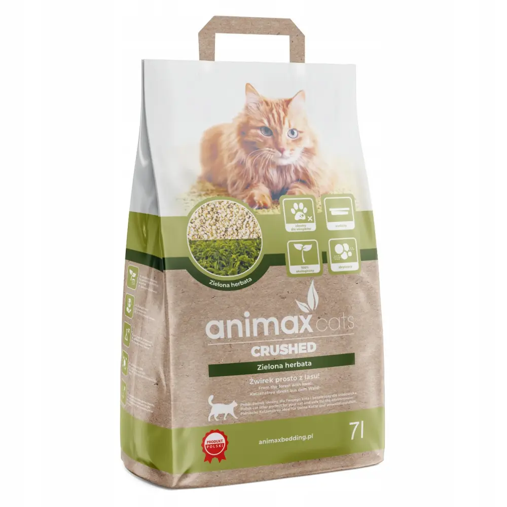 Meet your kitty’s new favorite clumping litter! 100% natural, made of conifer sawdust, this litter is ideal for both feline explorers and the environment. Thanks to the specially selected fraction, it does not adhere to paws or fluffy fur. Litter does not dust, so it will be accepted even by the most precise cat noses. What’s more, the litter has the unique ability to form sturdy, slick lumps after contact with moisture. This means that removing dirt from the litter box becomes easy and pleasant. All you have to do is gently lift the clumped part with a special shovel, shake off the excess litter, and you’re done! Animax Cats Crushed is also highly absorbent (it absorbs up to 4 times its own weight), completely biodegradable and will bring the delicate scent of a forest walk on a sunny day into your home.