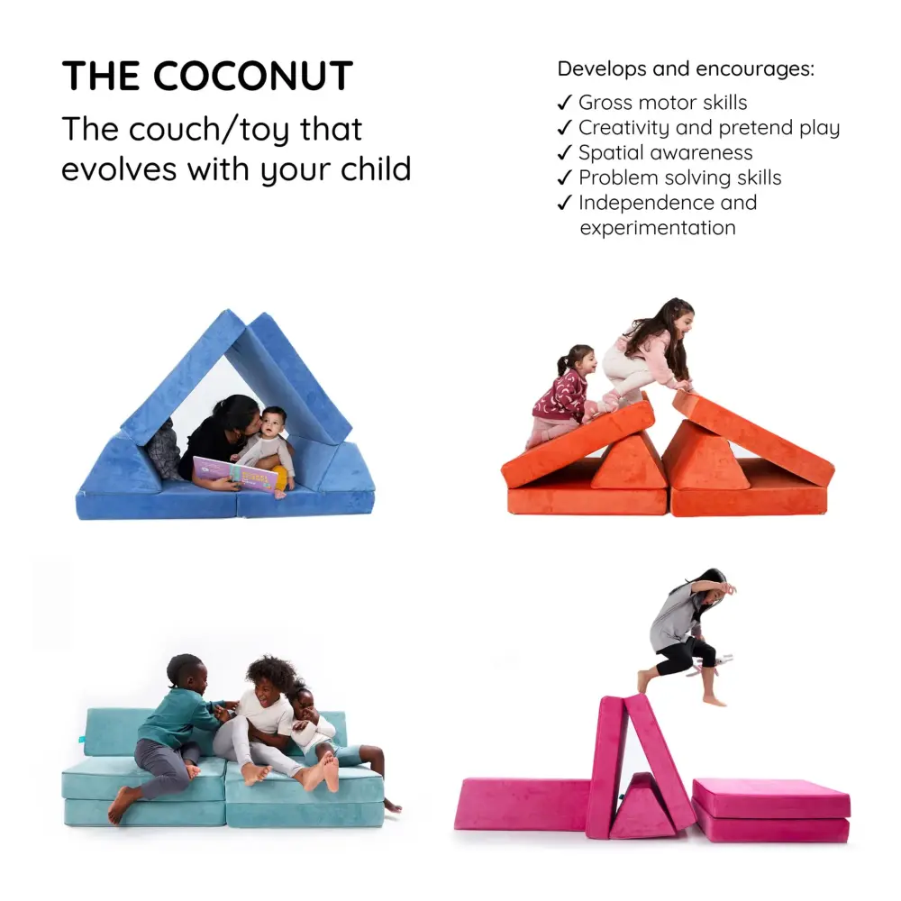 The Coconut, is a risk-free and durable soft foam furniture for kids to lounge, jump and express their creativity! 100% Canadian from design to manufacturing, it is the perfect addition to any bedroom, living room or playroom!