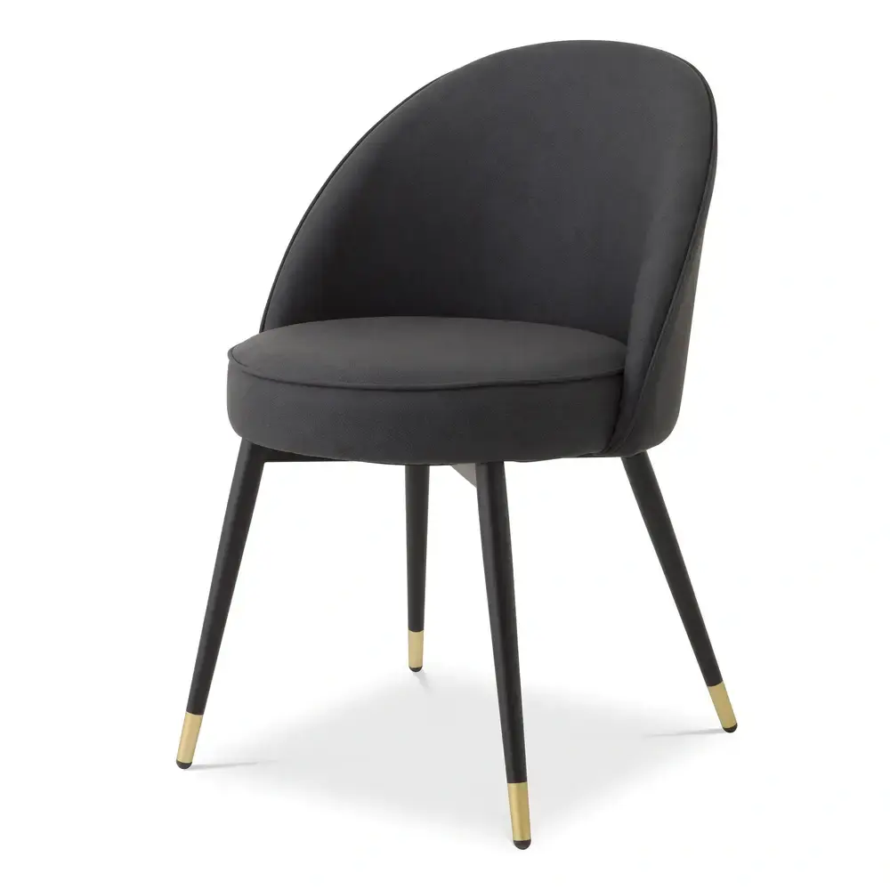 Add Mid-Century Modern appeal to your dining room or kitchen with this dapper set of 2 Cooper Dining Chairs. Each chair is characterised by a seating and backrest in a grey faux-leather upholstery with piping, tapered onyx legs and brass caps.