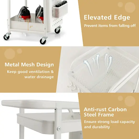 DIY Your Rolling Cart: This versatile storage cart comes with 2 pegboards, 2 binquireets in different sizes and 4 hanging hooks, so you can customize your own cart as per your preference. Meanwhile, the removable pegboards offer 3 choiceal styles for you to choose from.