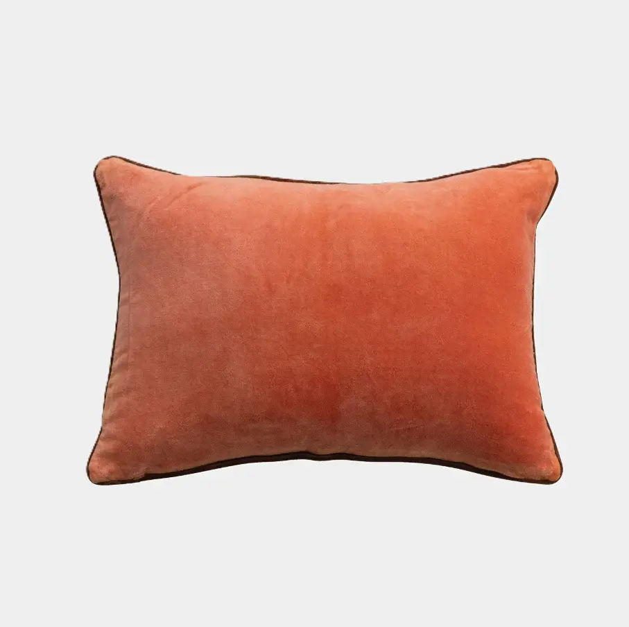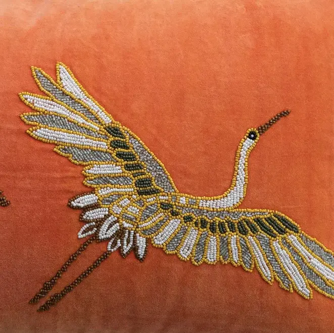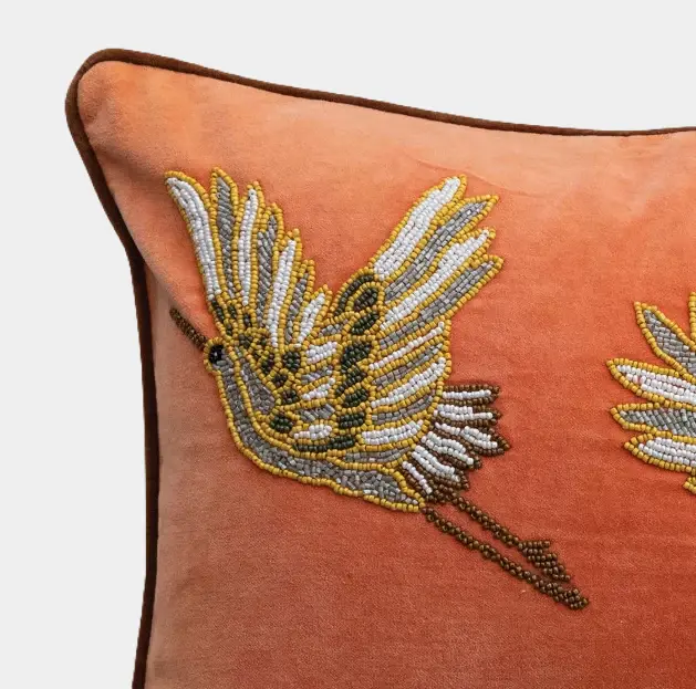 Cotton Velvet Lumbar Pillow w/ Beaded Cranes