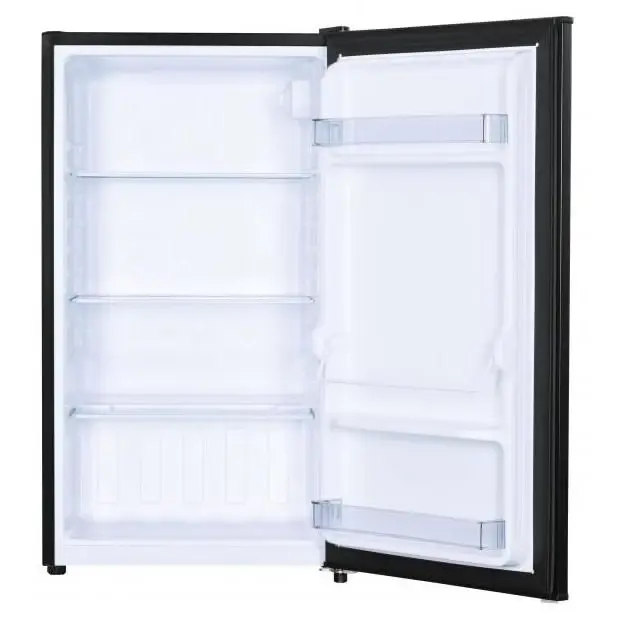 This voguish compact all-refrigerator supplies 3.2 cubic feet (91 liters) of refrigeration making it the ideal fit for lunchrooms, dormitories, smaller kitchens and wet bars. All of your favorite drinks can be kept cool with the tall bottle storage. There’s also plenty of room for all your snacks due to the units 2 full width and 1 half width glass shelves. The reversible door hinge allows users to choose to have the door open left or right-handed via the integrated door handle for any room set-up.
