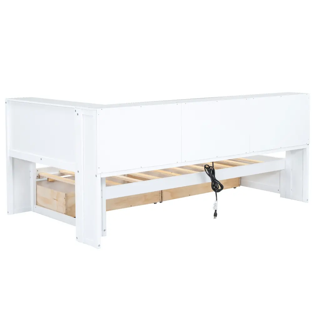 Twin Size Daybed With 2 Storage Drawers, Storage Cabinets And USB Ports – White