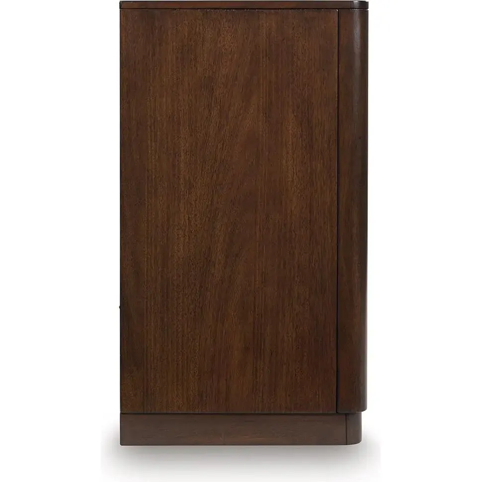 Casual contemporary styling with a decidedly modern vibe. This dining server dresses your dining spot in on-trend elegance with its rich lukewarm brown finish. Full-length metal pulls in a matte jet-black tone add a subtly cool touch to spacious storage cabinets. And thanks to its versatile functionality, this four-door piece effortlessly performs as a sideboard, entryway table or TV stand. Now there’s a simply stunning show of great taste—wherever you place it.