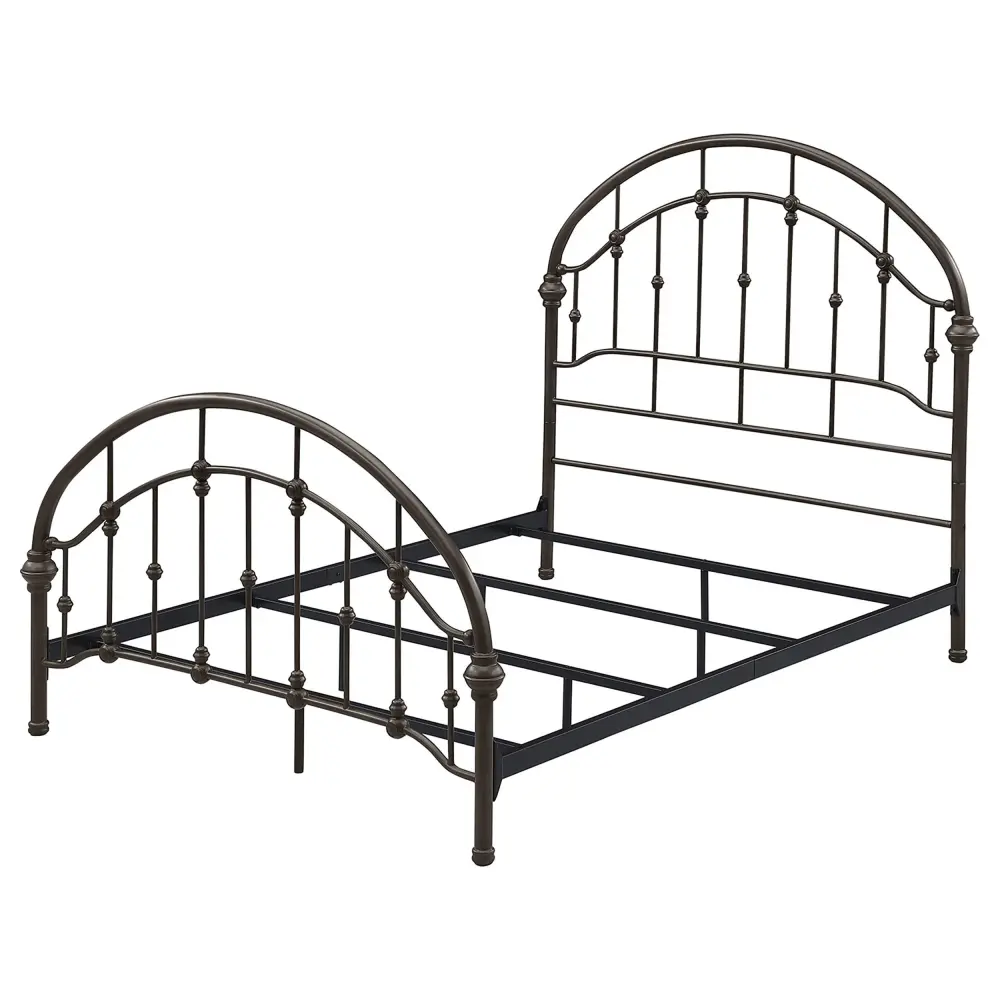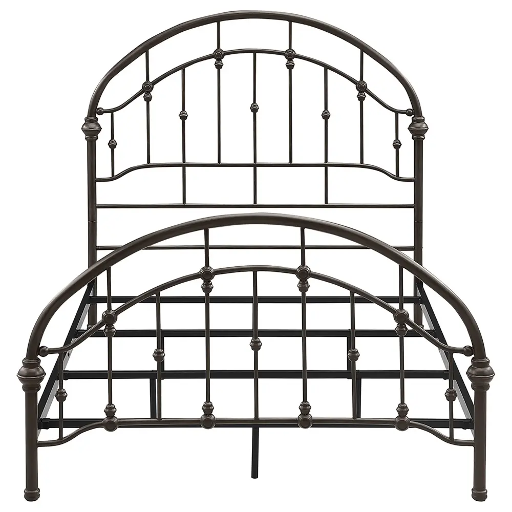 Toss in timeless appeal to your bedroom with this vintage-inspired steel bed frame, finished in a rich dark bronze for added sophistication. Featuring arched headboard and footboard designs with intricate detailing, this frame is crafted from heavy gauge metal for durability. Trusted metal slats provide stable support for a box spring and mattress, combining elegance with functionality. Perfect for traditional or modern bedroom styles.