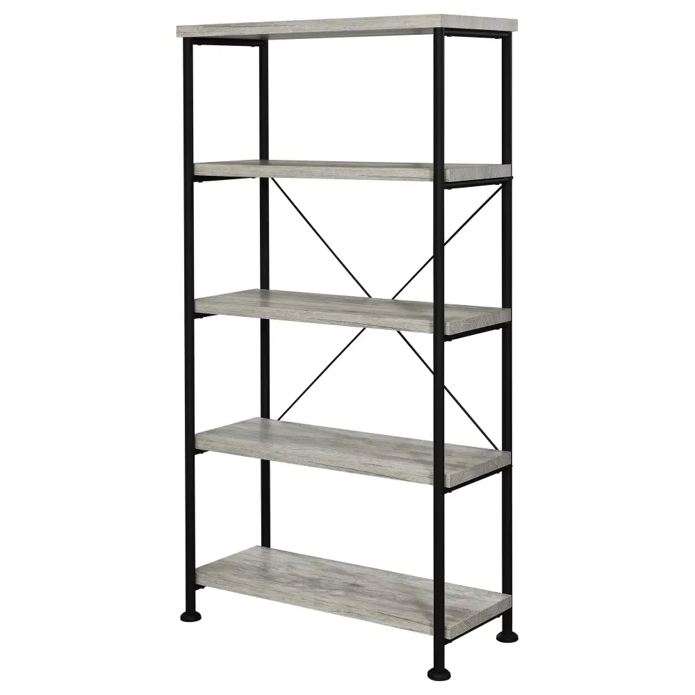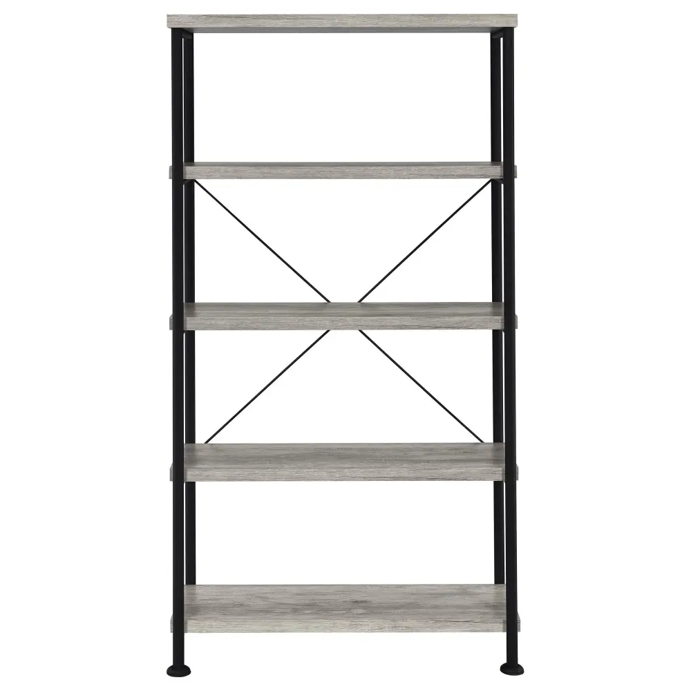 Stay true to current ambiance. With a lovely palette and sophisticated design, this bookcase becomes an important part of a home office or living space. Place books and decor on four shelves finished in grey driftwood. A slight industrial flavor brings intriguing character and a softer aesthetic that blends in more traditional settings. This bookcase is a perfect choice for energizing any space.