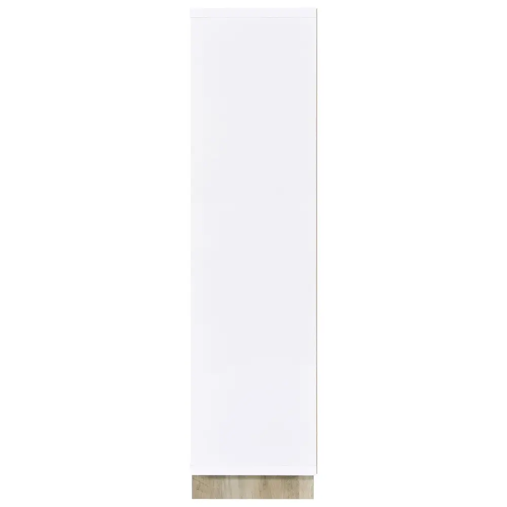 Indulge in the cozy, charming nature of a decorative bookcase. It’s an asymmetric design with eight compartments over six shelves, offering easy spaces for decor, books, and other personal treasures. The bookcase shows off a two-tone finish combination, complete with alabaster sides and shelves that brighten, and a brown wood grain back and legs, creating depth and contrast. Arched trim adds character to two of the compartments, perfect for highlighting favorite items. This versatile bookcase is a stylish choice in a foyer, living area, bedroom or even in your office.