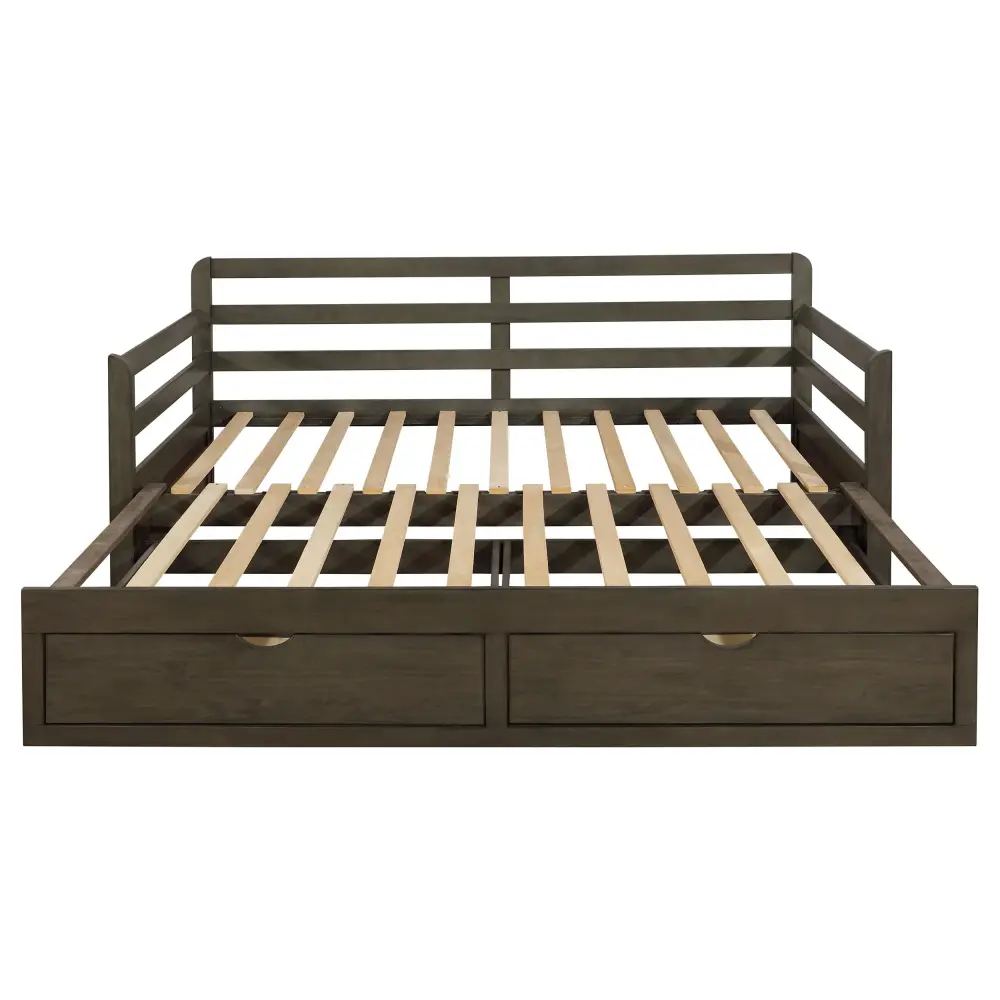 Bring function and fashion to your sleep space with this wood storage sleeper daybed. It is fashioned with pine, plywood, and MDF and is mattress-ready (no foundation required). Bed showcases storage footboard with two built-in drawers for linens and other items. You’ll love the practical fully slatted pull-out sleeper when guests stay over. It’s perfect for any sleep space and is versatile enough for a tight living space like a loft, as well.