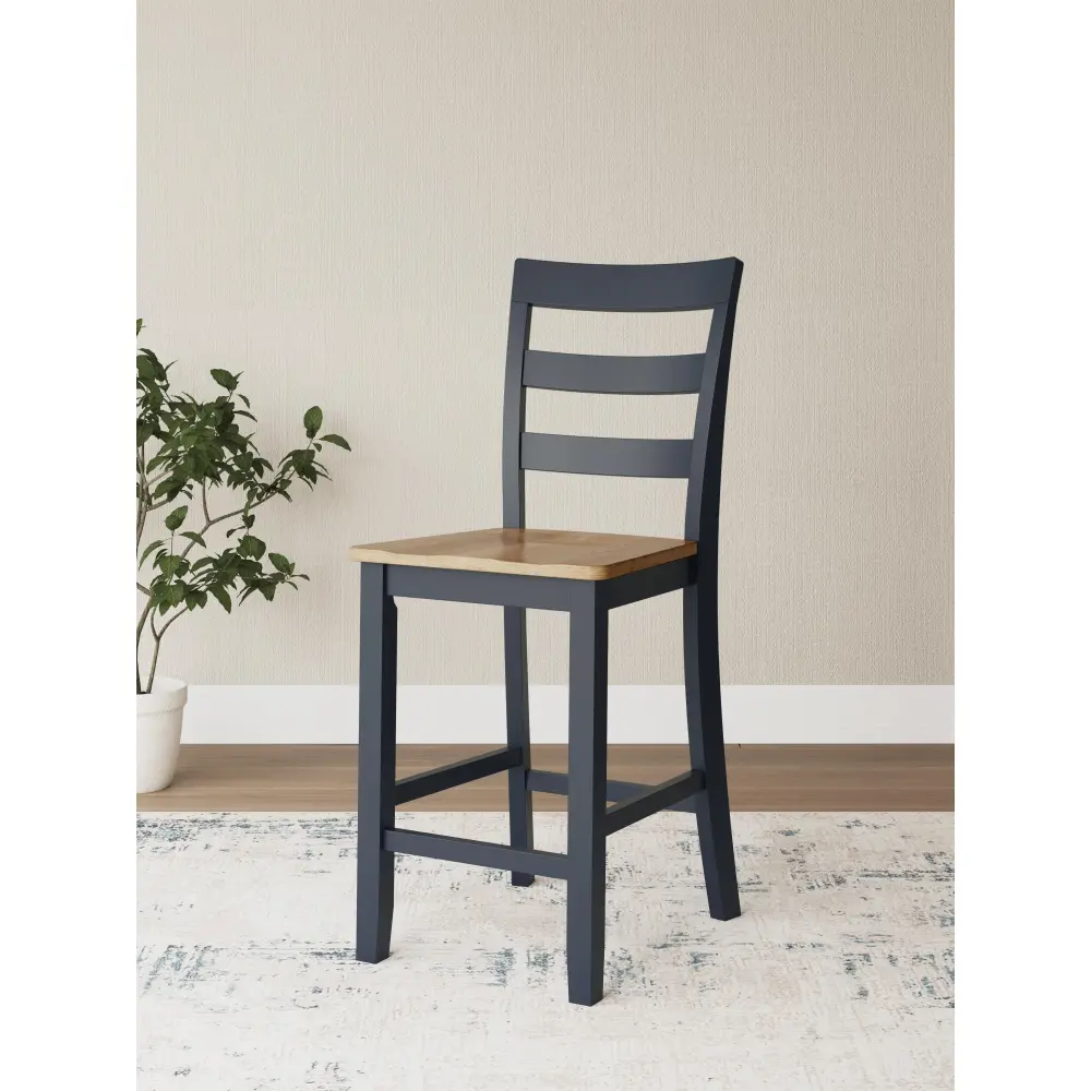 Complement your home’s simply relaxed sensibility with this counter height bar stool. A dark sapphire hue offers a chic contrast to the natural wood tone, for a casual look that vibes with a variety of aesthetics. Its hard, contoured seat design prioritizes both cleanability and comfort. Whether you’re sipping your morning coffee, settling in for dinner or working from home, this stool is smartly designed for everyday comfort and style.