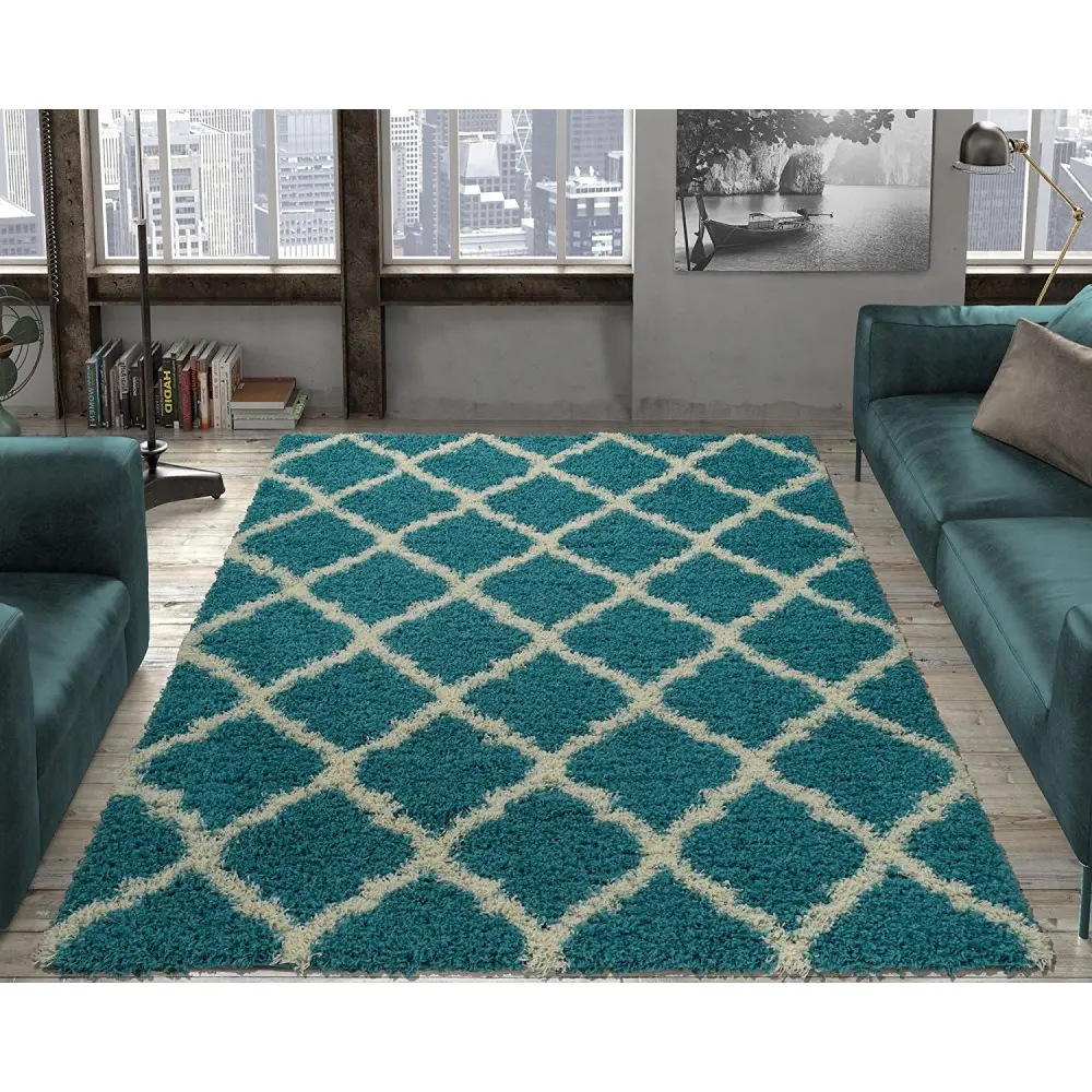 This 8’x10′ Area Rug from Nova Wholesale Furniture will make a great addition to your home décor. It features a diamond pattern in white and cyan fabric.