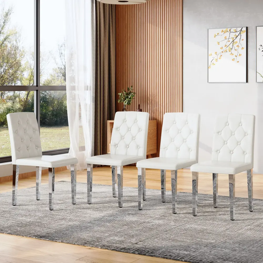 Dining Chairs With Ergonomic Buckle Backrest (Set of 4) – White