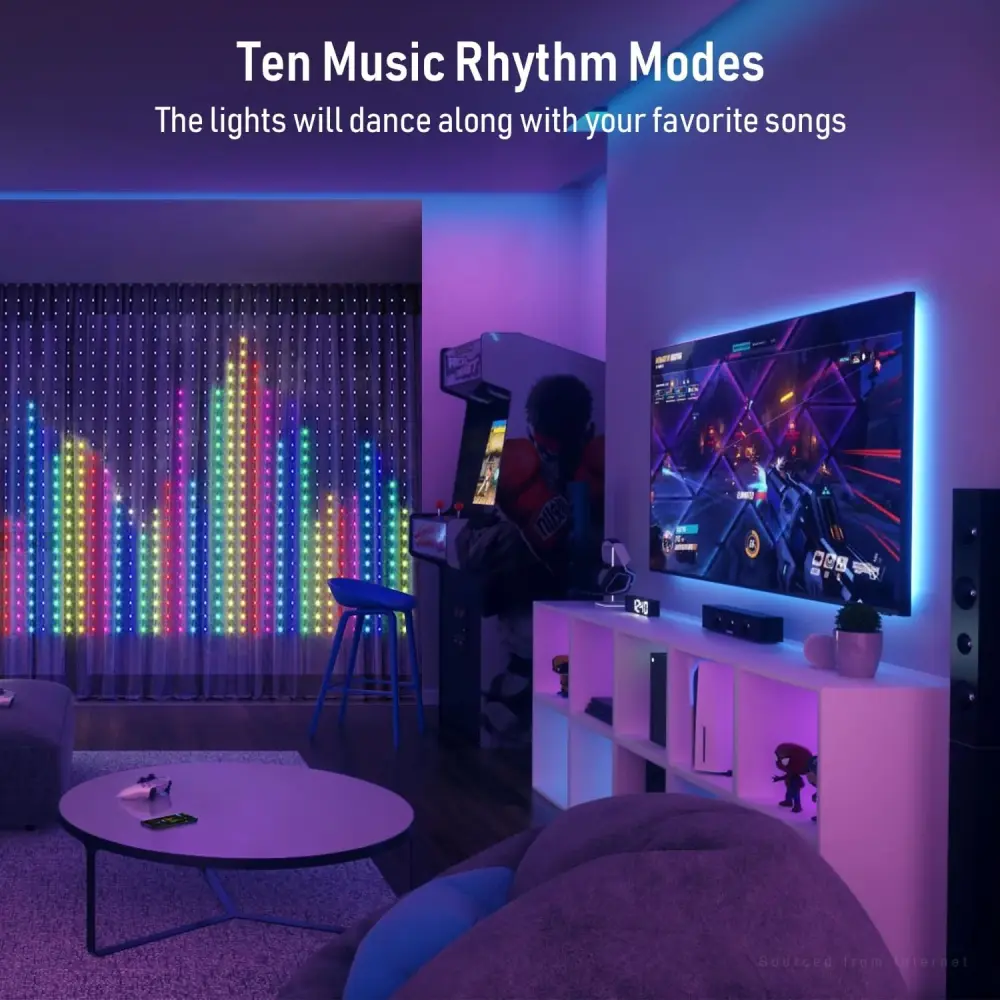 Dynamic DIY Curtain String Lights for Halloween Christmas Outdoor ★ Waterproof Design for Outdoor Use ★ RGB Color Changing with App Control → Brighten Your Home Decor Instantly